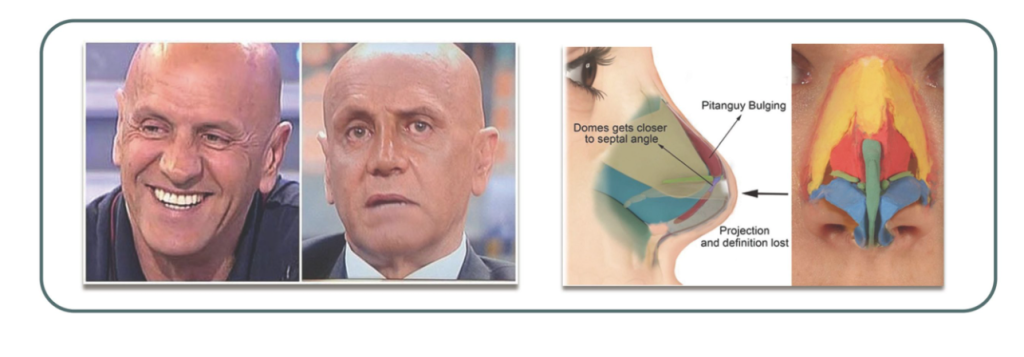 En la rinoplastia estructural clásica suele realizarse la separación de los cartílagos laterales superiores del tabique y la eliminación de ligamentos nasales con el fin de mejorar la exposición y facilitar la manipulación. Esto altera la envoltura cutánea y puede modificar la manera en que la piel se adapta al nuevo esqueleto nasal, así como la movilidad de la punta.