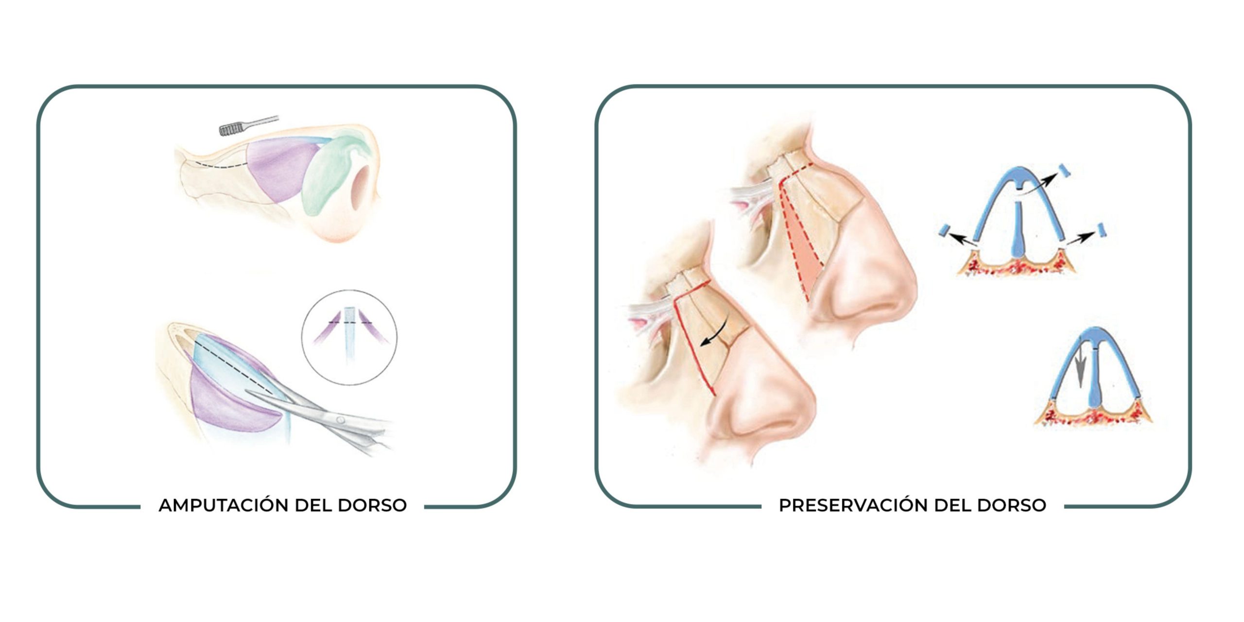 | Tendencia actual | Enfoque reconstructivo tradicional dentro de la rinoplastia moderna. | Enfoque preservador dentro de la rinoplastia contemporánea. |